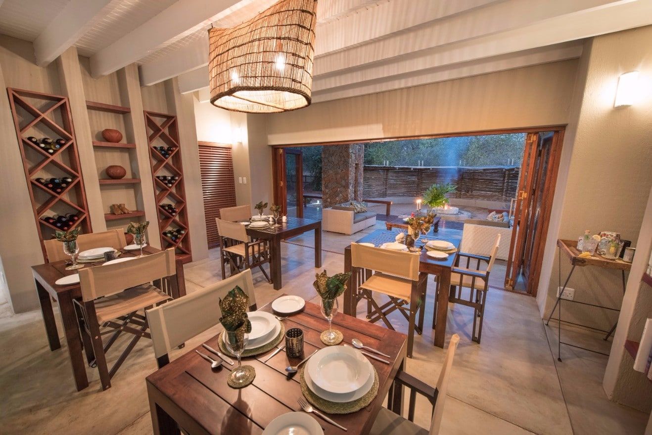 At Ekhaya Bush Villa, our indoor and outdoor living spaces create a seamless connection with nature. The spacious indoor living area features comfortable seating and an open-plan layout that flows into the dining space, perfect for sharing meals and stories.